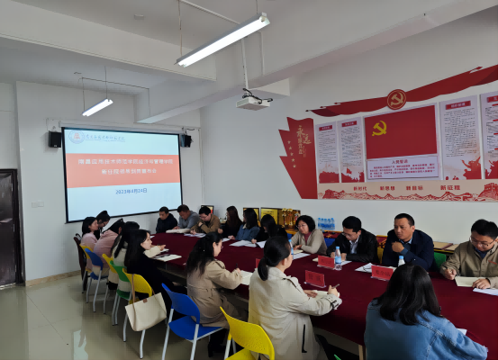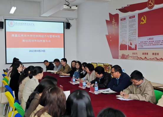 4月24日下午1点,副校长郑行忠、校长助理娄全福到beat365英国官方网站参加副院长任职会,人力资源部负责同志及学院全体教职工参加此次会议。