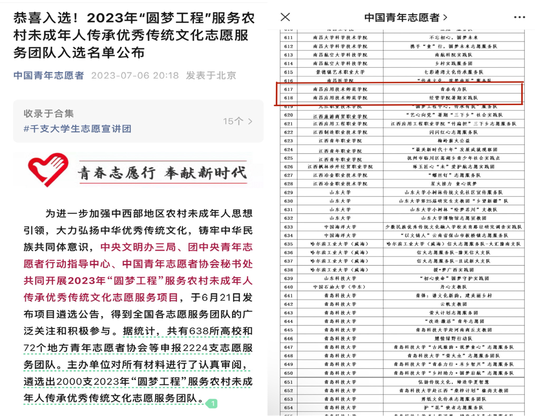 喜报|beat365英国官方网站暑期“三下乡”实践队入选2023年“圆梦工程”服务农村未成年人传承优秀传统文化志愿服务团队