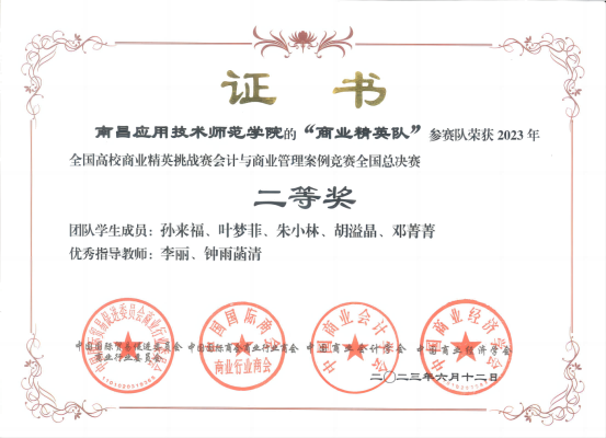 其中,获得的两项国家二等奖,真实反映了学院在商业精英挑战赛中位居高手的地位。这次荣誉凝聚了代表队每一位队员的智慧和努力,他们在众多优秀对手中脱颖而出,充分展示了学院培养出的高素质人才的特点。