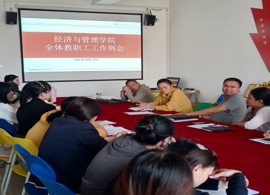 会前,全体教职工进行了思想政治理论学习,副书记朱红梅领学了“庆祝中华人民共和国成立74周年招待会在京举行 习近平发表重要讲话(新华网 2023年9月28日)”、“习近平:推进中国式现代化需要处理好若干重大关系(求是网 2023年9月30日)”、“习近平对宣传思想文化工作作出重要指示”(人民网2023年10月9日) 。