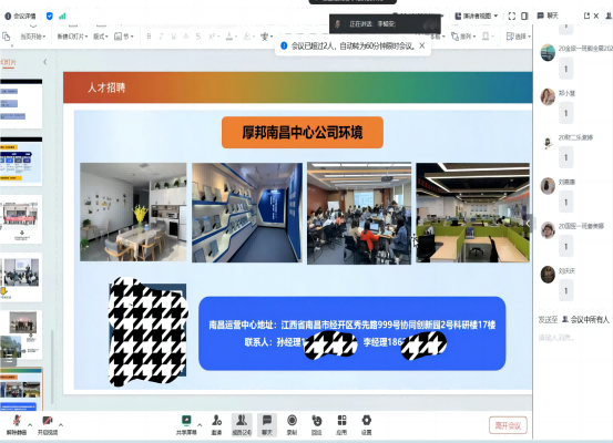 为进一步拓宽2024届毕业生就业渠道, 持续推进毕业生与用人单位精准供需对接,2023年12月21日,学院特邀厚帮南昌中心公司开展线上专场招聘会,毕业班辅导员及部分2024届毕业生参加此次招聘。