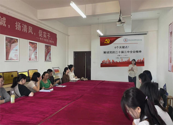 为切实加强党的建设,提升党员队伍的政治素质和思想觉悟,强化党性意识、增强凝聚力,更好地发挥党员先锋模范作用。beat365官网第一党支部于2024年9月24日在党员活动室开展“支部书记讲党课”,第一党支部书记王佳乐同志为全体党员讲授“6个关键点!解读党的二十届三中全会精神”专题党课。