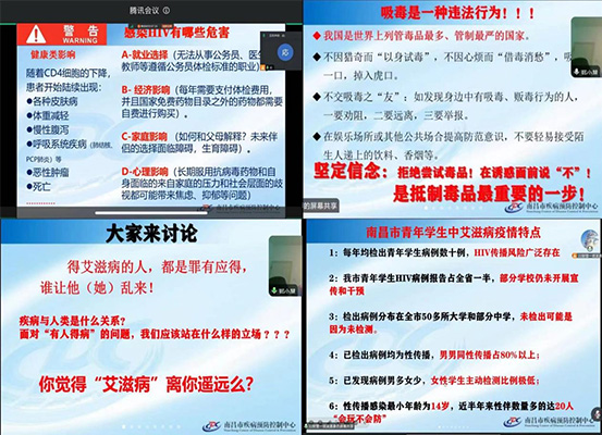班会上,各班辅导员通过PPT详细讲解了南昌市青年学生中艾滋病的疫情特点,包括病例数量、传播途径、易感人群等关键信息,并着重介绍了艾滋病的基本知识、危害以及预防措施。同时,他们也科普了对艾滋病的正确认识,告诉学生们艾滋病是一种目前尚无有效疫苗和彻底治愈方法的严重传染病,但通过积极预防、及早发现、规范治疗,艾滋病能得到有效的控制,改善生存质量。