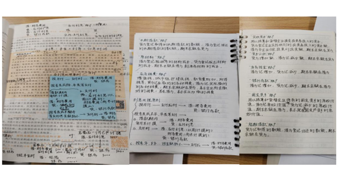 课堂笔记是我们读书学习时着手笔尖、流于心间的跳动的字符,记录着课堂最美好的青春年华。一笔一划都是我们曾努力过的见证,一字一句都是再次感悟的资本。每一处荧光标记、每一个符号和每一句批语都印刻着奋斗的痕迹。为营造勤于学习、善于思考的学习氛围,督促同学们端正学习态度,提高听课效率,培养良好的学习习惯,弘扬笔记文化,经济与管理学院特此开展“书香润心灵,笔记展风采”评选活动,让我们一起来看看叭!