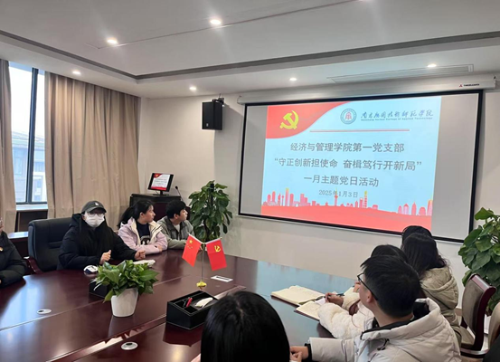 为深入贯彻落实党的二十大及党的二十届三中全会精神,进一步激发党员干部的使命感和责任感,奋力开创各项工作新局面。beat365官网第一党支部于2025年1月3日在沁苑八实506会议室开展“守正创新担使命,奋楫笃行开新局”一月主题党日活动,会议由第一党支部副书记王佳乐主持,支部党员参会。