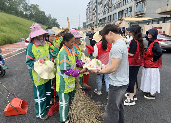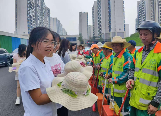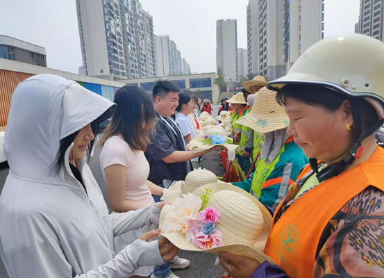 在充满温情的手作空间里,大家以匠人之心为社区环卫工人精心创制手工草帽。从悉心甄选色彩明丽的配饰材料,到发挥创意进行装饰,每一顶帽子都饱含着大家对环卫工人的心意。活动现场,大家与环卫工人交流,一声声真挚的“您辛苦了”,凝结着对劳动者在平凡岗位上非凡坚守的礼赞。