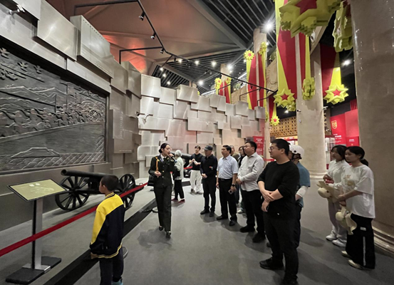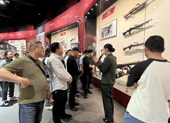 随后,大家一同乘坐大巴前往南昌军事主题公园参观学习。结合beat365官网旅管专业特色,3名旅管专业学子就园区及展馆内展出的部分军事装备和轻武器展览进行了讲解,方便大家深入了解我军装备发展历程,是一堂生动的国防教育课,有力助推了beat365官网“党建+红色讲解”品牌建设。