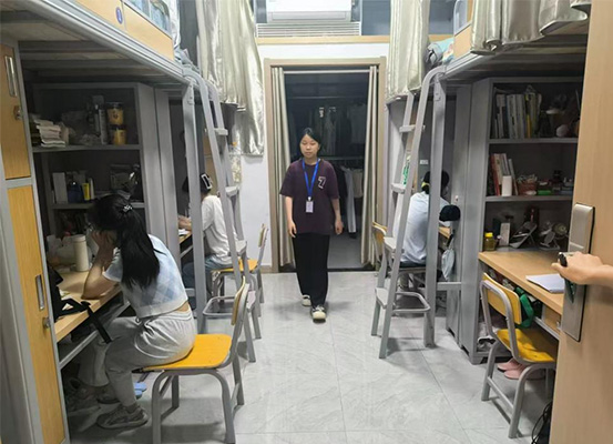 检查过程中,工作人员重点对宿舍卫生、用电安全、消防安全等方面进行细致排查。在卫生方面,对地面清洁、物品摆放、床铺整理等情况进行查看,对于部分存在卫生死角、物品杂乱的宿舍,当场提出建议,督促同学们及时清理打扫,养成良好卫生习惯。