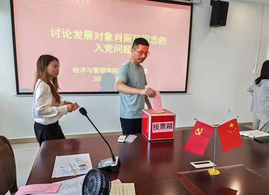 然后,讨论发展对象肖丽丽同志的入党问题,全体党员教师一致认为,肖丽丽同志政治立场坚定,积极学习党的理论知识,思想上始终与党中央保持高度一致。经充分讨论与无记名投票,党员教师全票通过其入党申请,希望她发挥先锋模范作用,为党和人民的教育事业贡献更多力量。