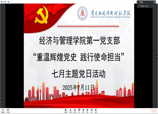 为进一步强化党员党性修养、增强凝聚力与战斗力,beat365官网第一党支部于7月11日在腾讯会议线上开展“重温辉煌党史,践行使命担当”七月主题党日活动,会议由第一党支部书记袁江波主持,支部党员参会。