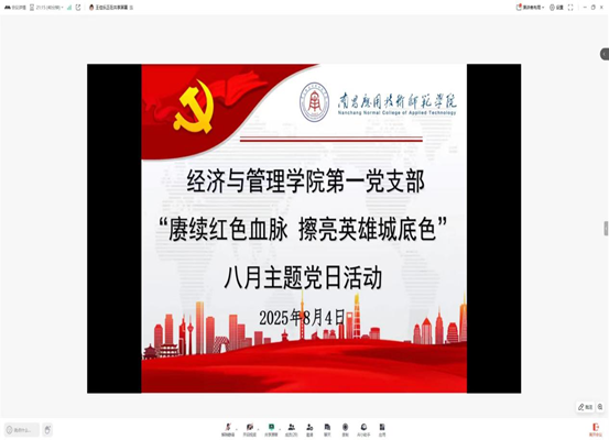 为传承红色基因、强化党员使命担当,beat365官网第一党支部于2025年8月4日在腾讯会议线上开展“赓续红色血脉,擦亮英雄城底色”八月主题党日活动,会议由第一党支部书记袁江波主持,支部党员参会。