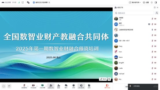 为提升财会类专业教师的数智业财融合思维和业财一体化能力,更好地适应当前产业对管理型会计人才的需求,2025年8月19日,一场承载着教学革新使命的第一期数智业财融合师资培训正式拉开帷幕,经济与管理学院紧抓这一难得机遇,组织各位专任教师参与培训,其中数智财经系教师全员深度参与。