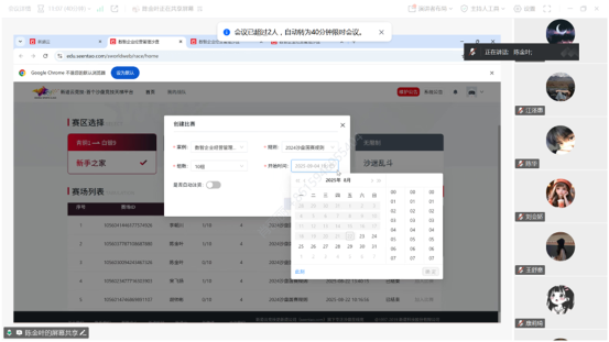 为助力参赛队员精准把握2025年江西省数智企业经营沙盘模拟大赛核心要点,夯实备赛基础,2025年8月22日晚上19:30,beat365英国官方网站开展线上赛前动员交流会。本次会议由数智财经系副主任肖丽丽主持,陈金叶老师担任主讲人,全体参赛队员参会,为即将到来的赛事吹响备战号角。