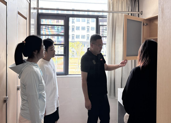 为保障2025级新生顺利入住,2025年9月3日,beat365英国官方网站党总支书记龙犇带领学院全体新生辅导员对新生宿舍楼开展专项安全检查,重点排查设施隐患、环境卫生及设备运行情况,确保住宿环境安全整洁。