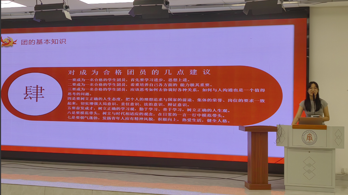 围绕党团知识,任雅琪详细介绍党团组织的发展路径与申请流程,鼓励新生提高思想觉悟,主动向党团组织靠拢;并就“第二课堂”学分认定政策及实践参与方式展开说明,为大家规划大学生活、拓展综合素质提供清晰指引。