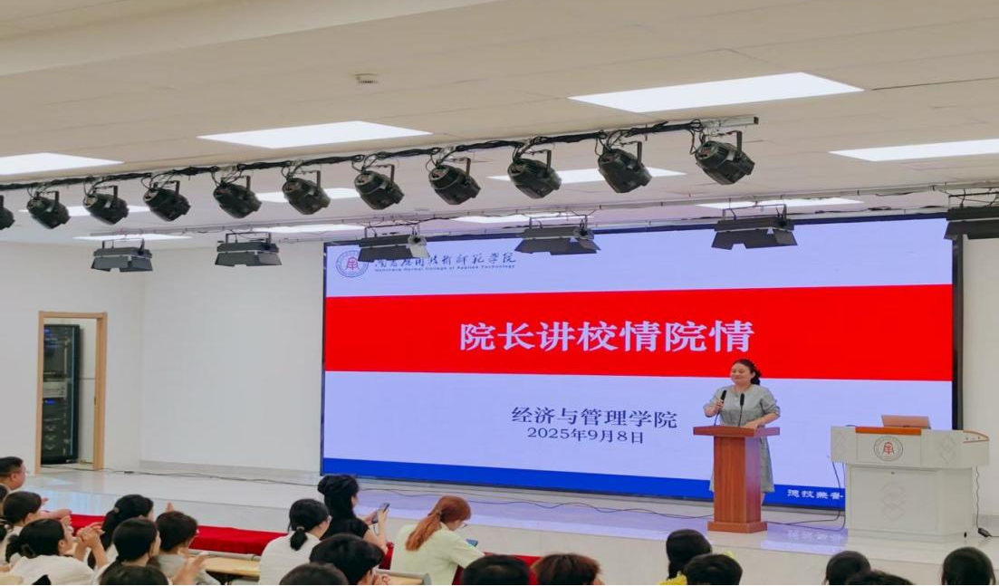 金秋九月,学院迎来了一批朝气蓬勃的2025级新生。为帮助新生尽快了解学校与学院,更好地适应大学生活,学院精心组织了一场新生见面会。学院院长胡梨花、党总支书记龙犇、副院长袁江波、各行政科室负责人及新生班辅导员悉数出席。会议由兰金辉主持。