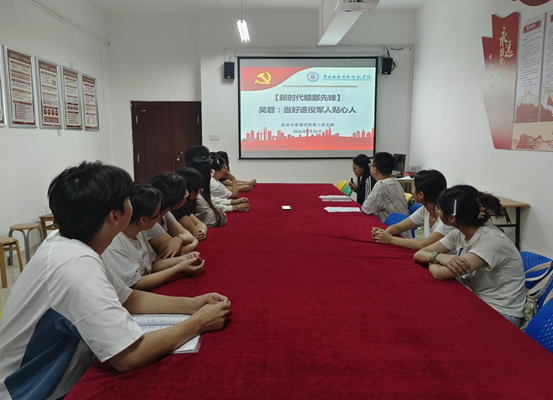 会议伊始,支部书记万佳欣组织大家集中学习【新时代赣鄱先锋】吴君:当好退役军人贴心人的先进事迹。她强调全体党员要以吴君同志为榜样,牢固树立服务意识,在学习生活中主动担当作为,以更加饱满的热情和务实的作风积极投身志愿服务和社会实践,充分发挥党员的先锋模范作用。