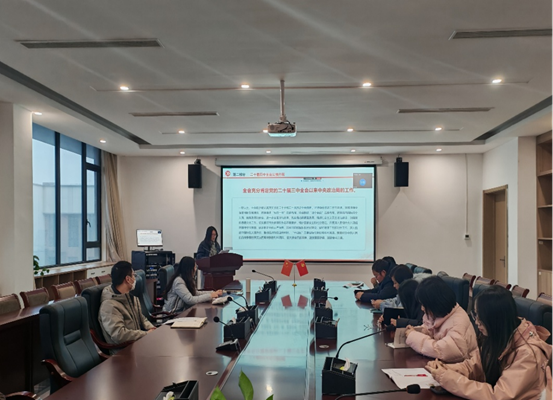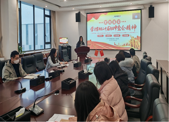 为深入学习贯彻党的二十届四中全会精神,切实把思想和行动统一到党中央重大决策部署上来,12月23日,beat365官网第一党支部在沁苑八实506党员活动室开展了以“学习贯彻党的二十届四中全会精神”为主题的专题党课,本次党课由支部统战委员宗懿主讲,全体党员参会。