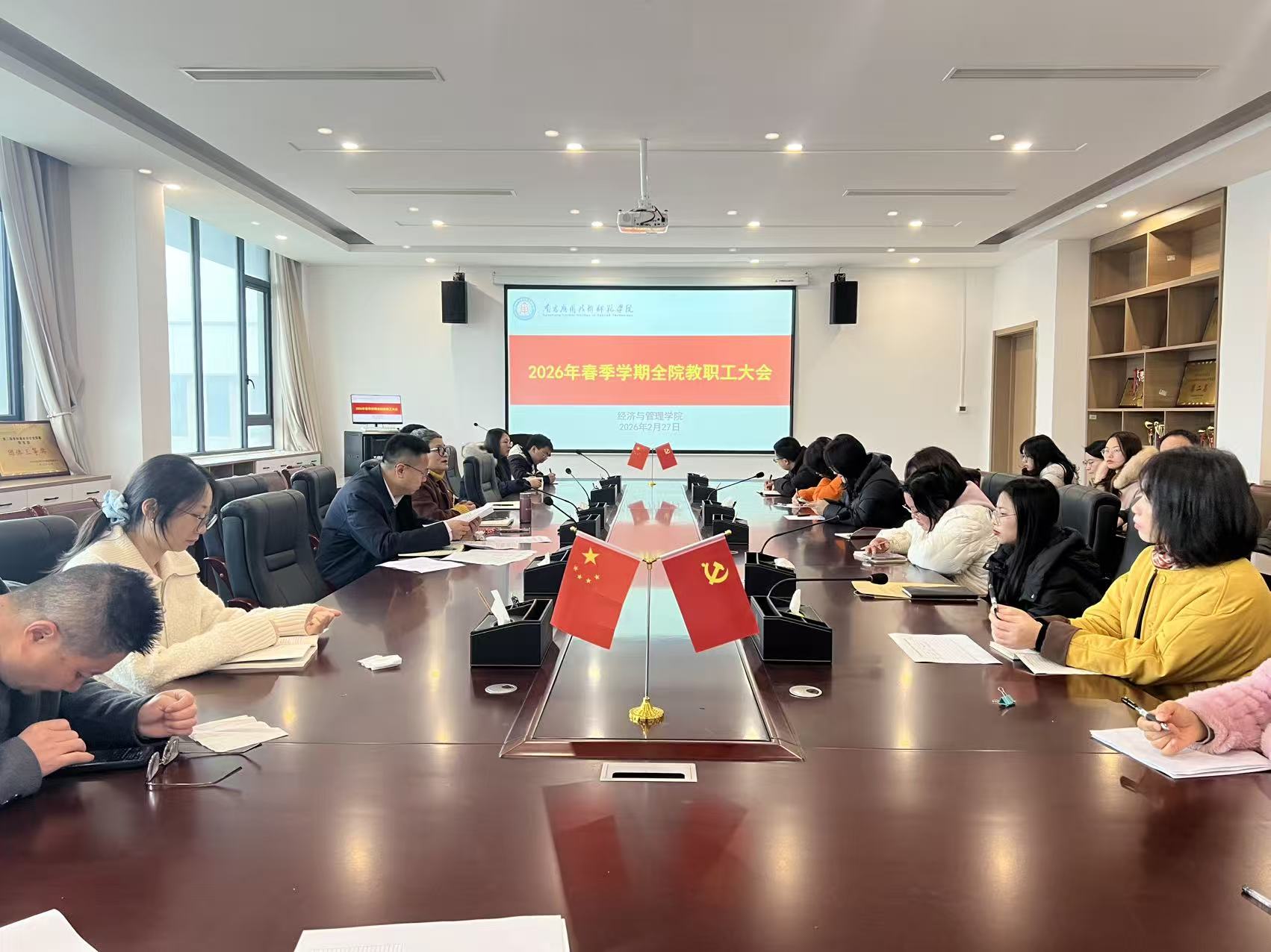 新学期伊始,为明确工作方向、凝聚育人合力,beat365官网于2月27日上午9:30在沁苑八实506会议室顺利召开全院教职工大会,全体教职工齐聚一堂,共话新目标、共谋新发展,为新学期各项工作开好局、起好步奠定基础。