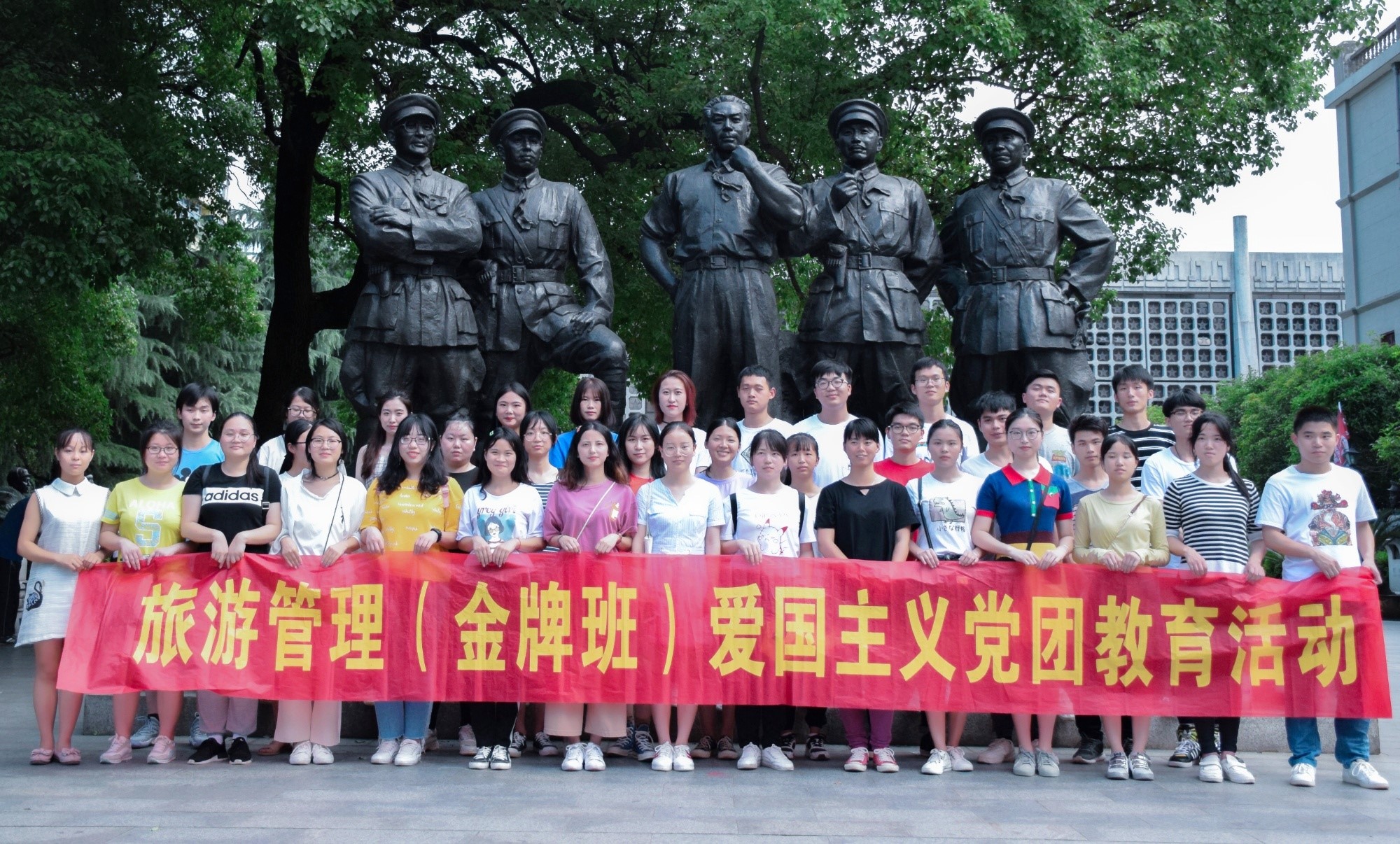 为了突出beat365官网旅游管理专业办学特色,进一步提高学生的实践能力和实战讲解能力,培养具有较强实践能力的旅游应用型综合服务人才。6月5日,beat365官网2016级旅游管理专业学生、2017级旅游管理(金牌班)学生在辅导员周会老师、专任教师尹庆玲的带队下,赴南昌八一起义纪念馆开展《导游词创作与讲解》实践课程及红色实践教学•爱国主义党团教育学习活动。