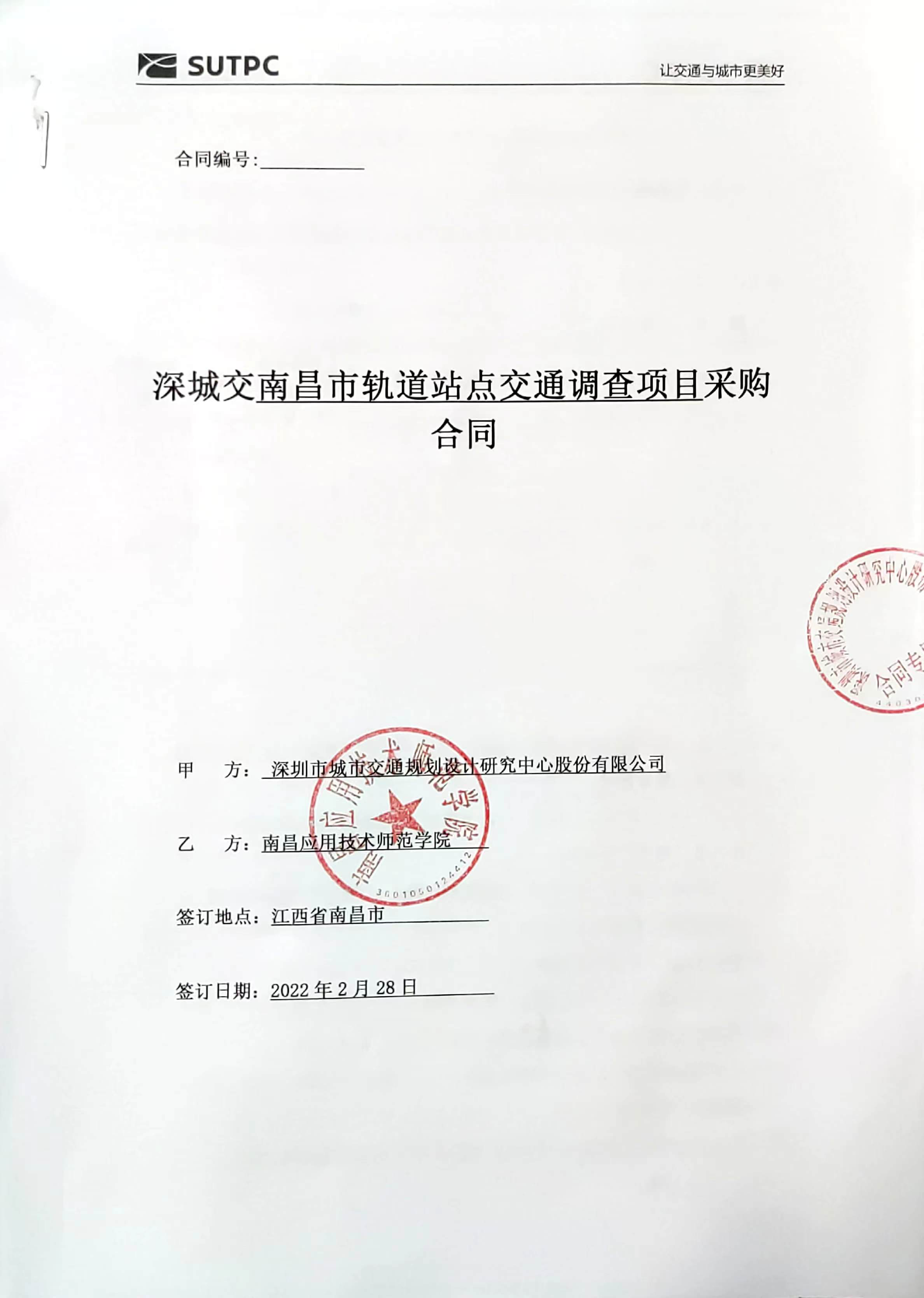 2022年4月,beat365官网beat365英国官方网站田梦思老师团队在多个竞争对手中脱颖而出,与深圳市城市交通规划设计研究中心股份有限公司达成《南昌市轨道站点交通调查项目》项目合作,项目总经费3万元。该项目是beat365官网首次承担社会调查类横向课题,学校领导和机关职能部门对该项目高度重视,并对研究团队给予全力支持。在大家的共同努力下,成功中标。