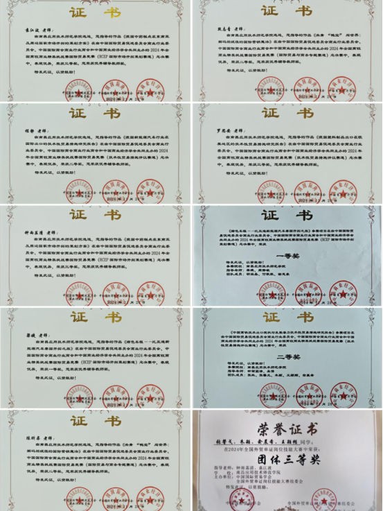 4.赛教融合成效显著:学生在全国高校商业精英挑战赛、全国外贸单证岗位技能大赛、“挑战杯”、“互联网+”等赛事中获国家级一等奖8项、省级一等奖6项等多项荣誉,以赛促学、以赛提能,职业技能与综合素养双提升。